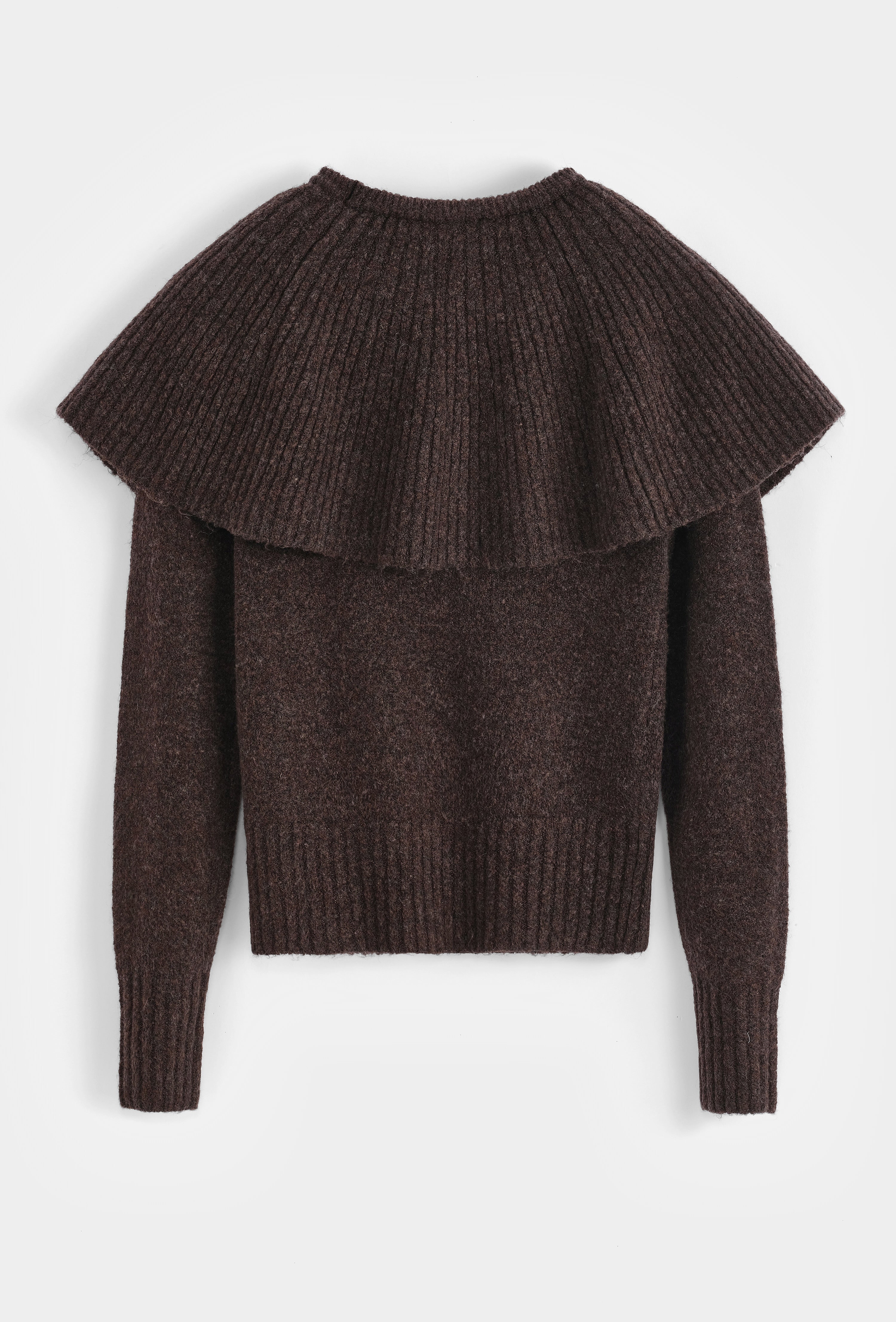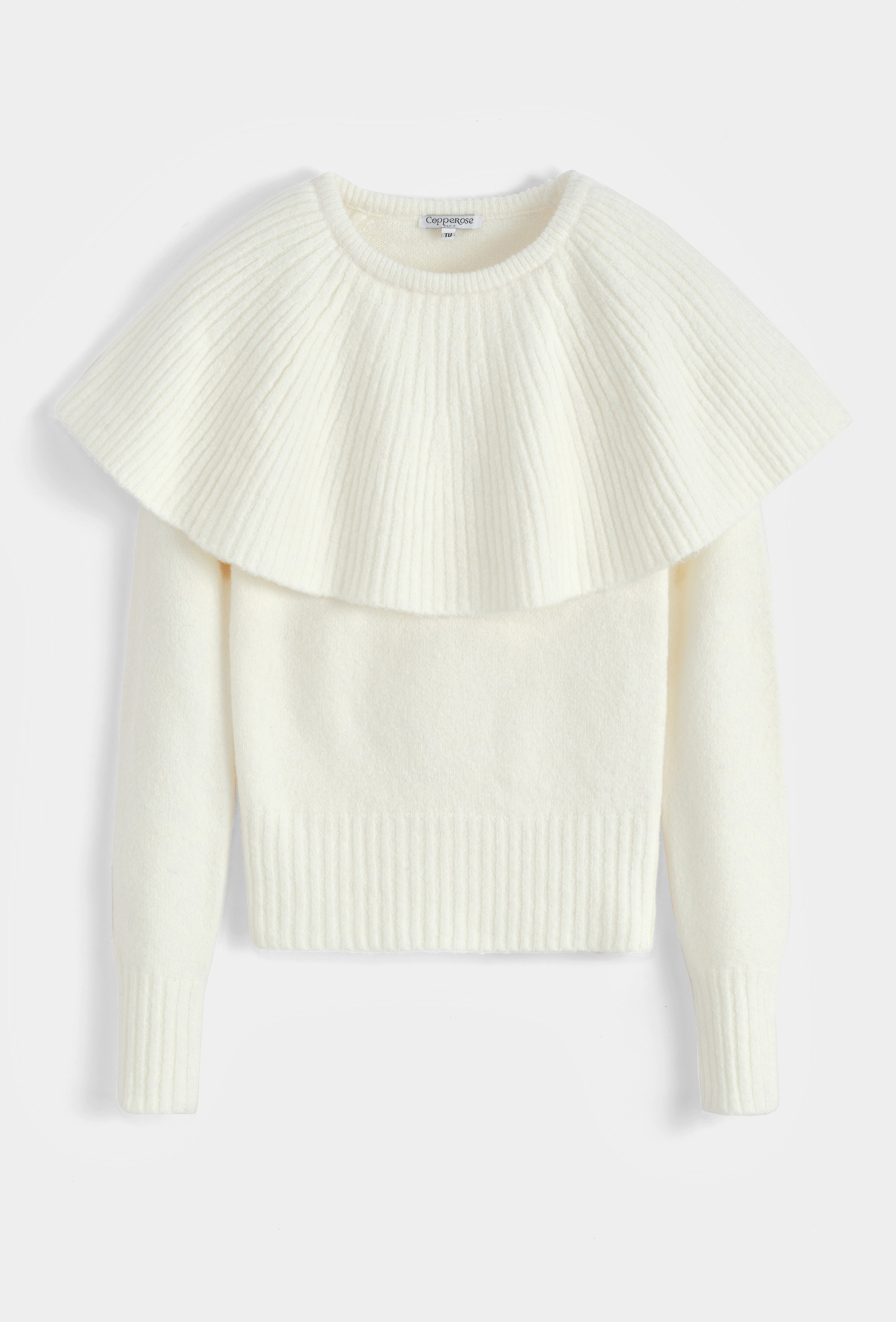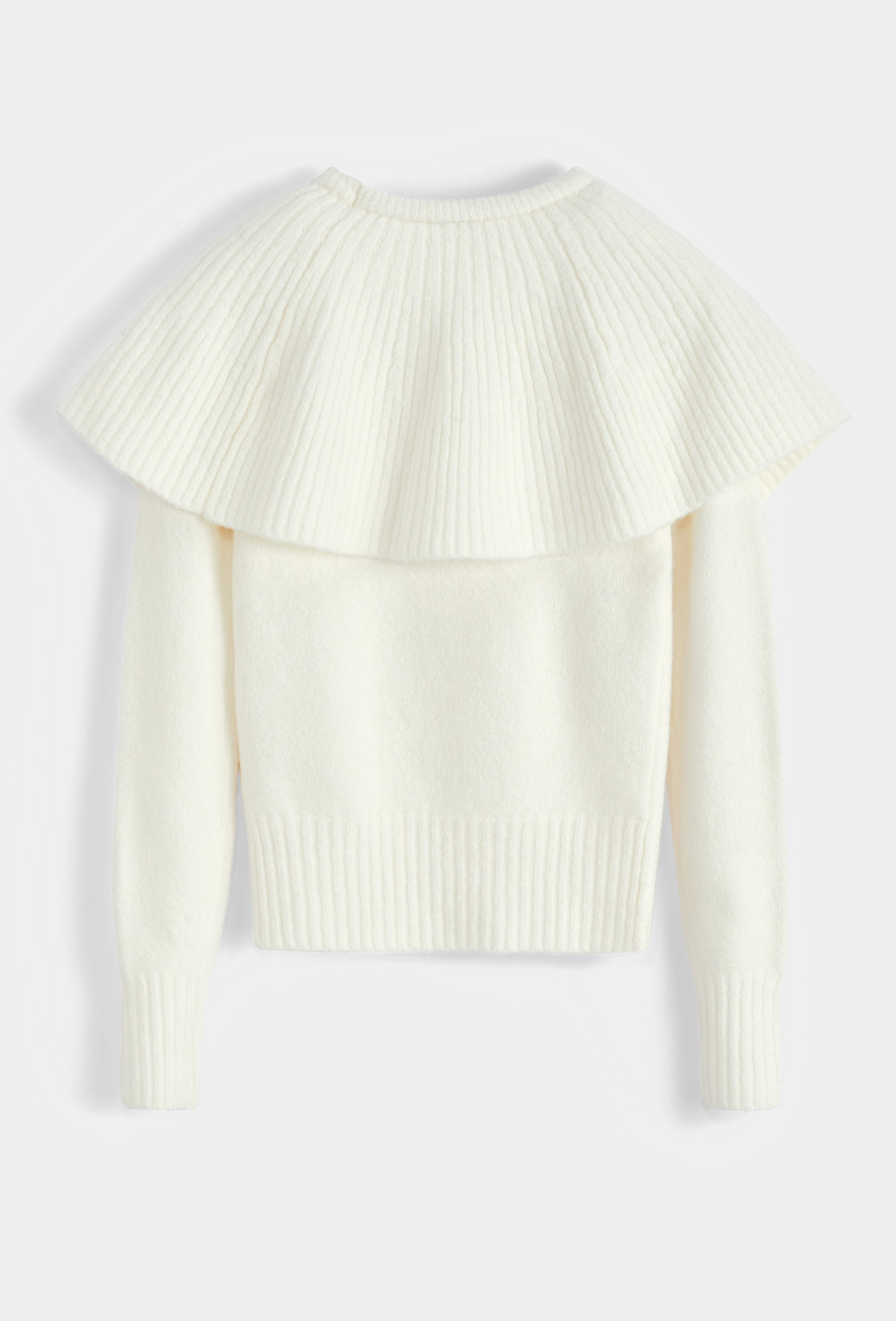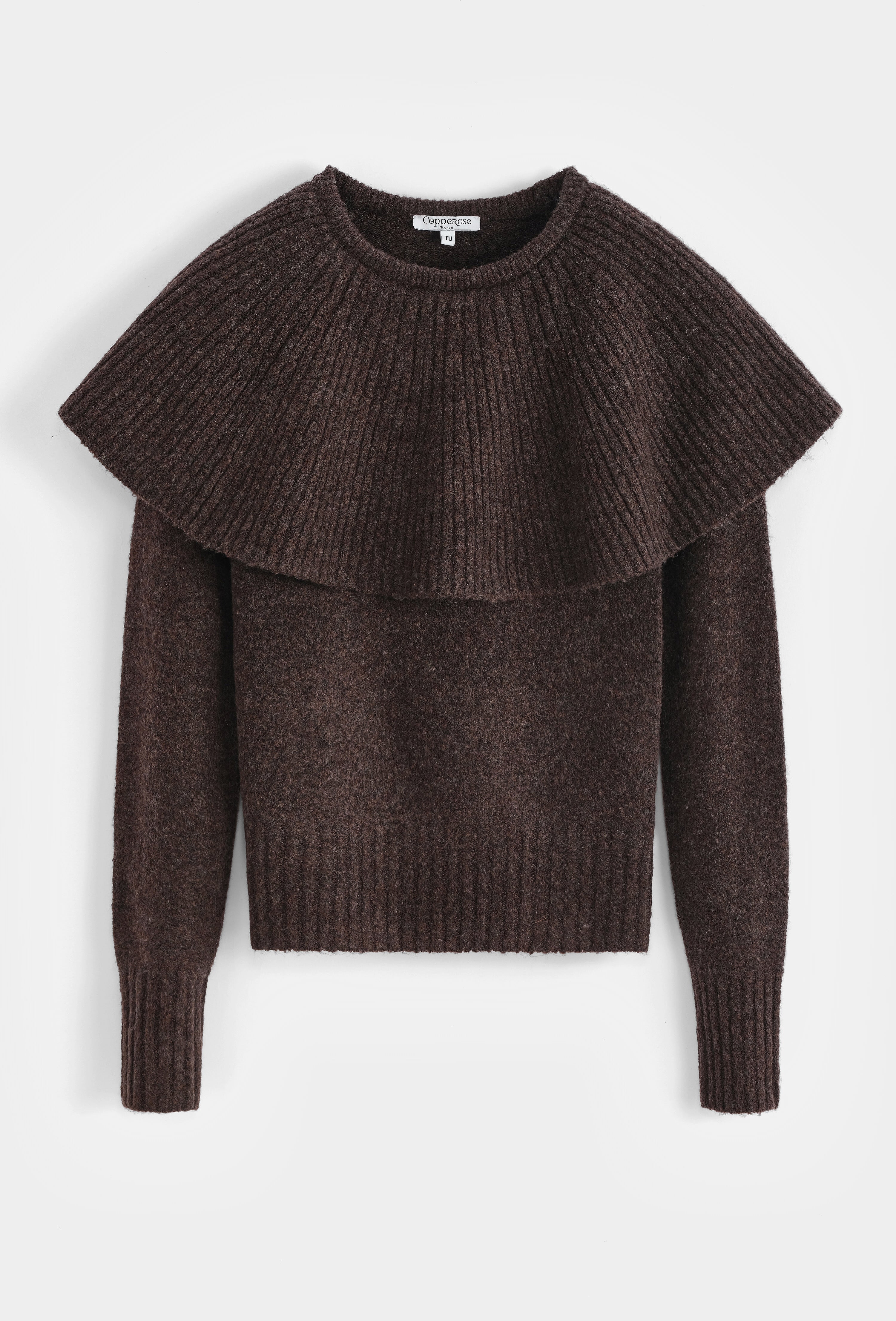 Pull en maille douce à col rond, rehaussé d'un grand col cape en maille côtelée.