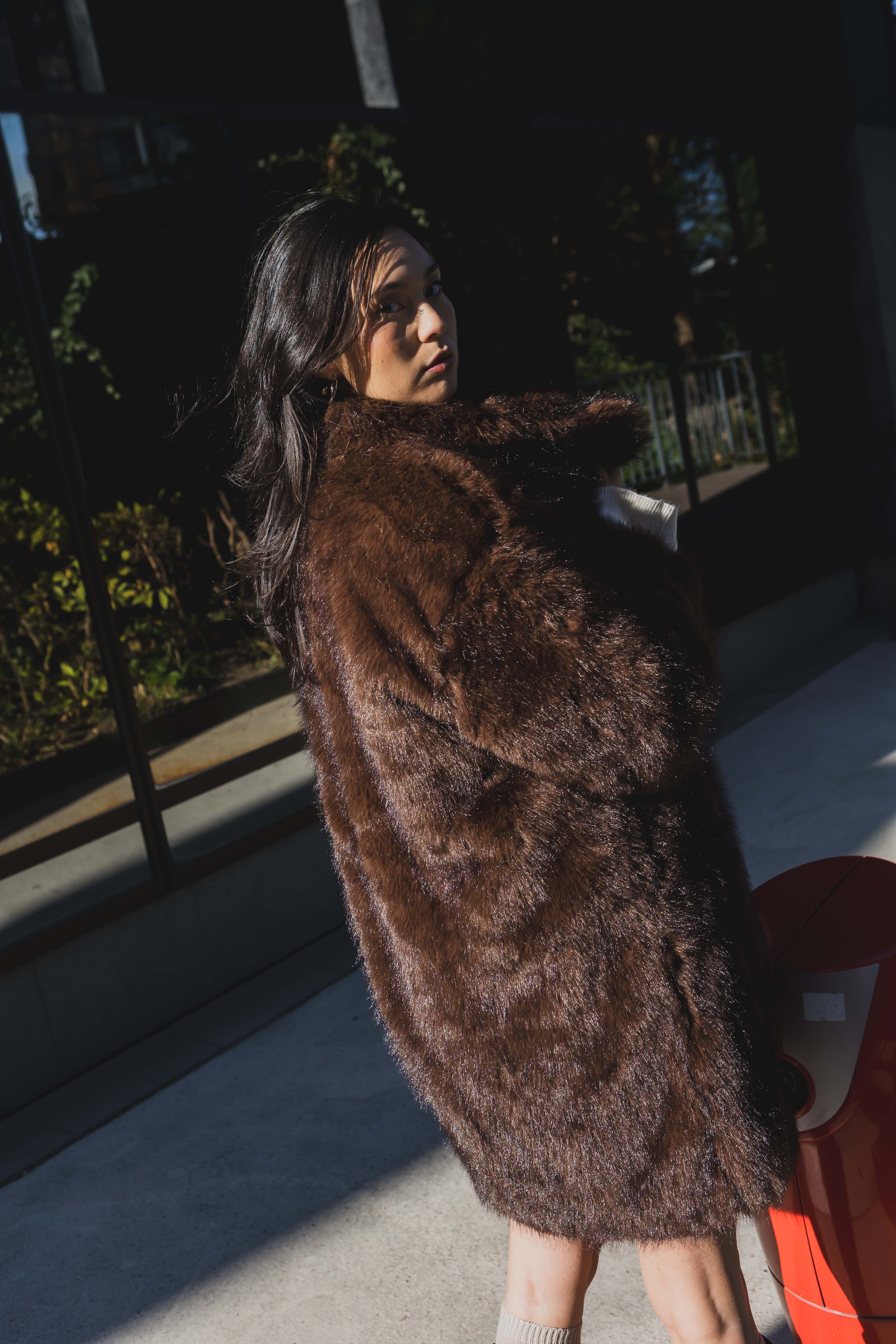Manteau mi-long fausse fourrure