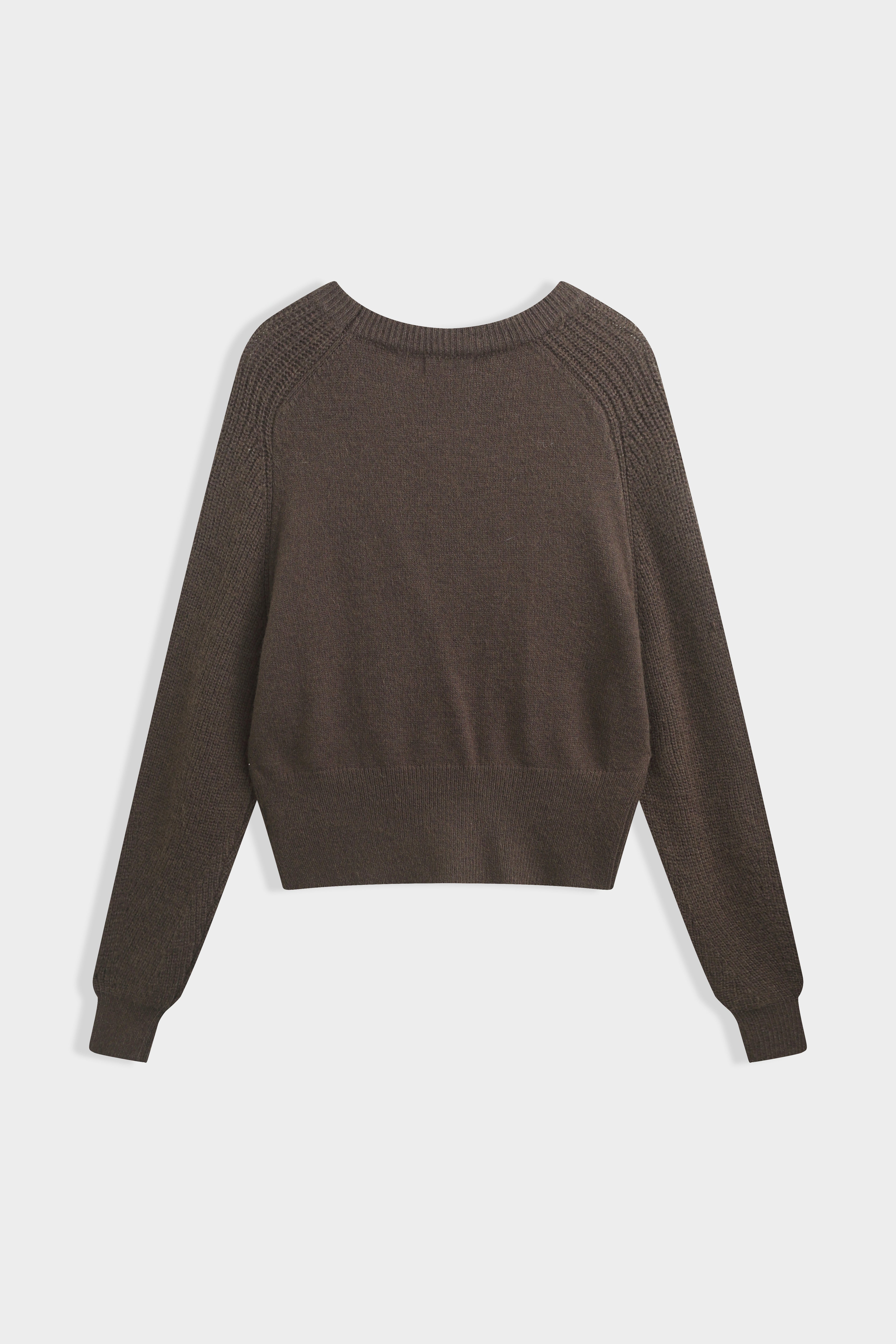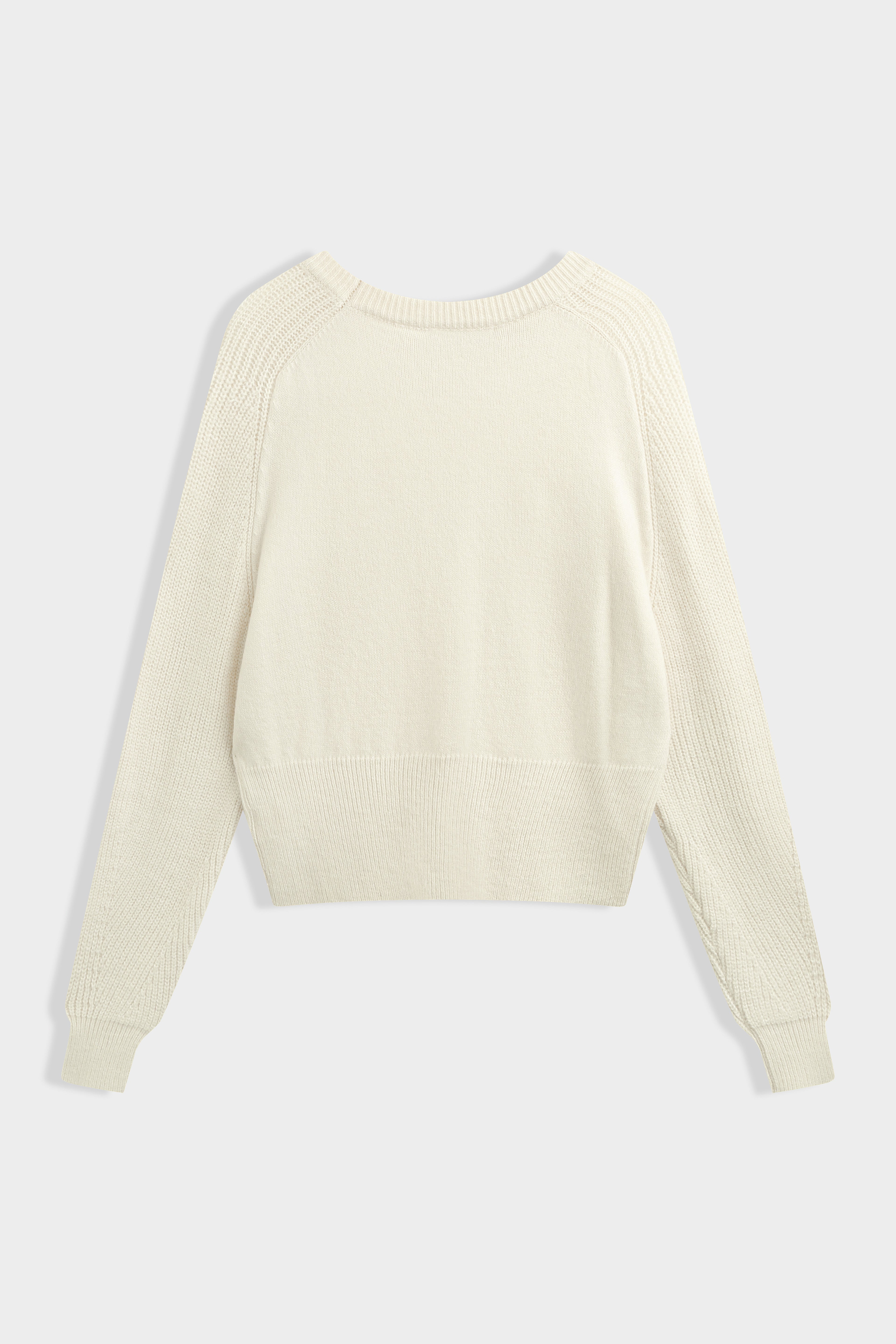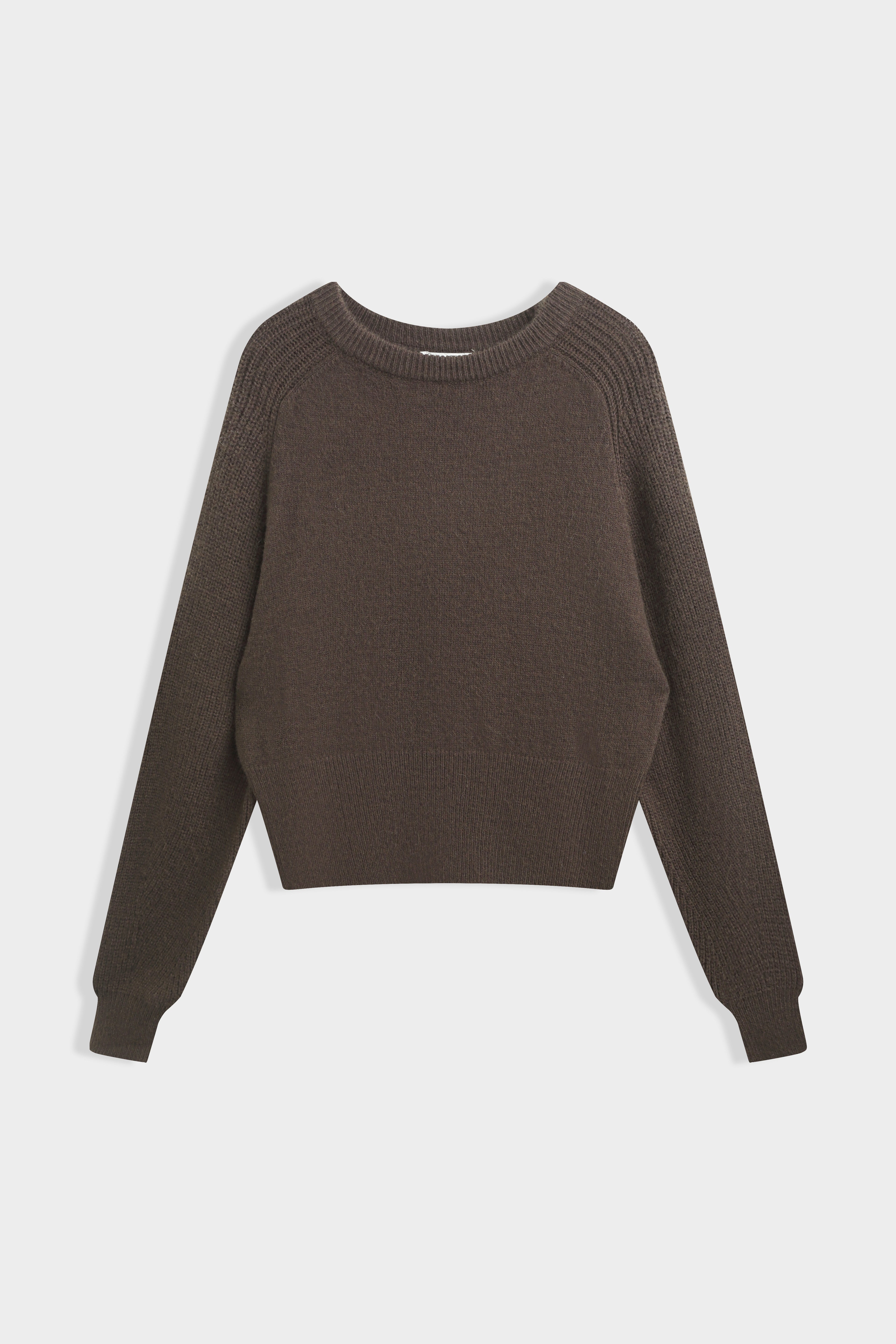 Détails côtelés contrastants aux manches, aux poignets et à la base.