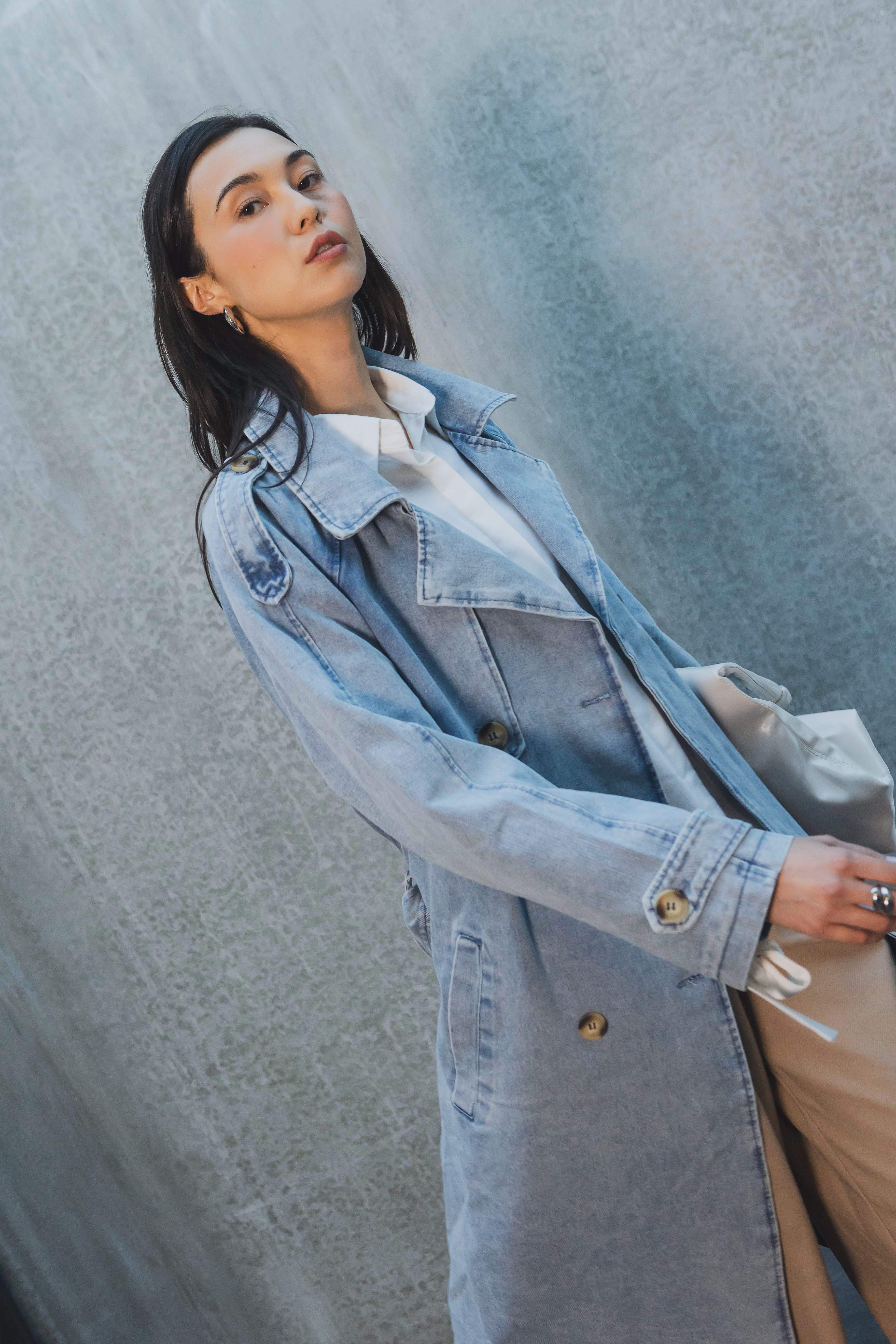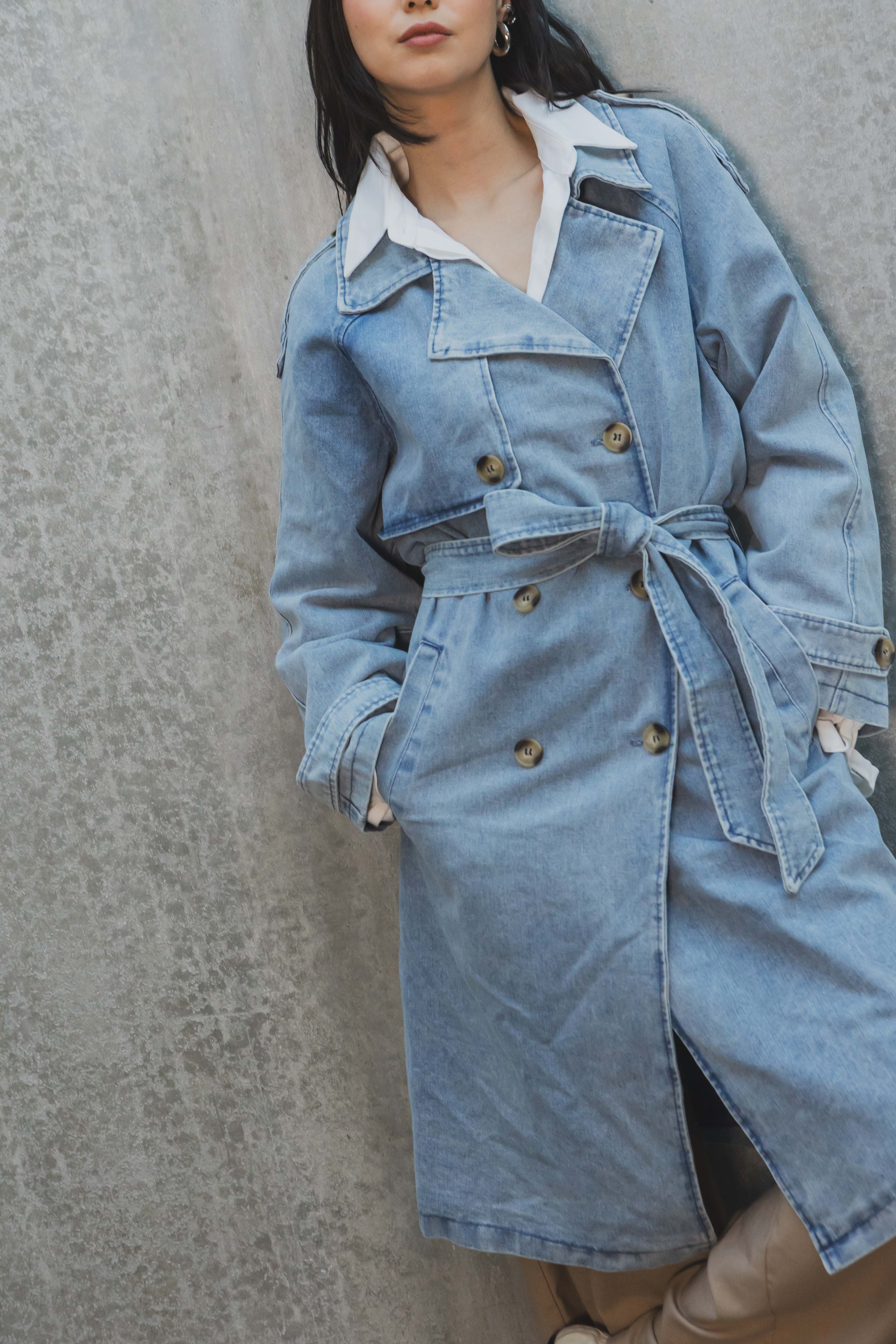 Denim trench coat