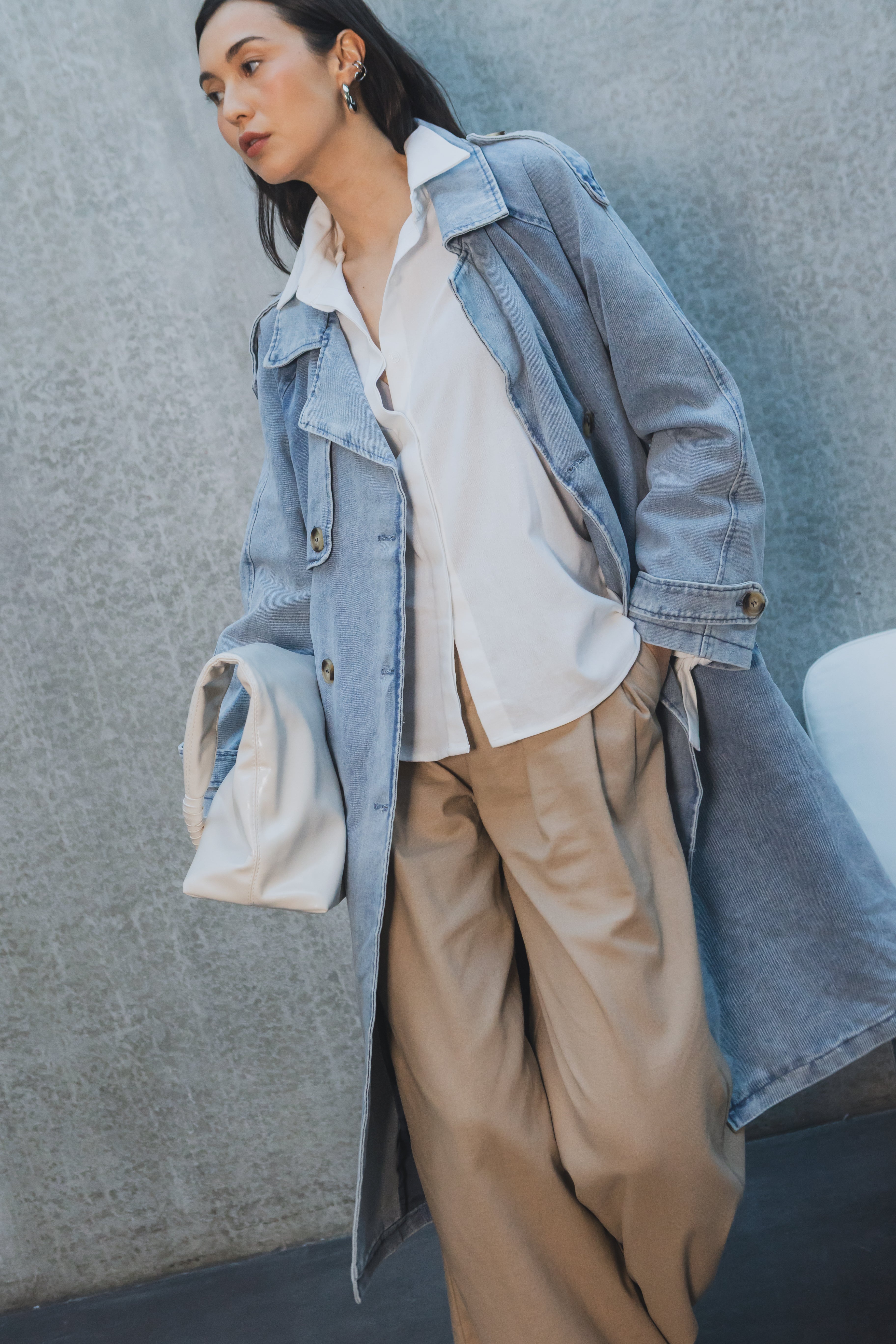 Long denim trench: