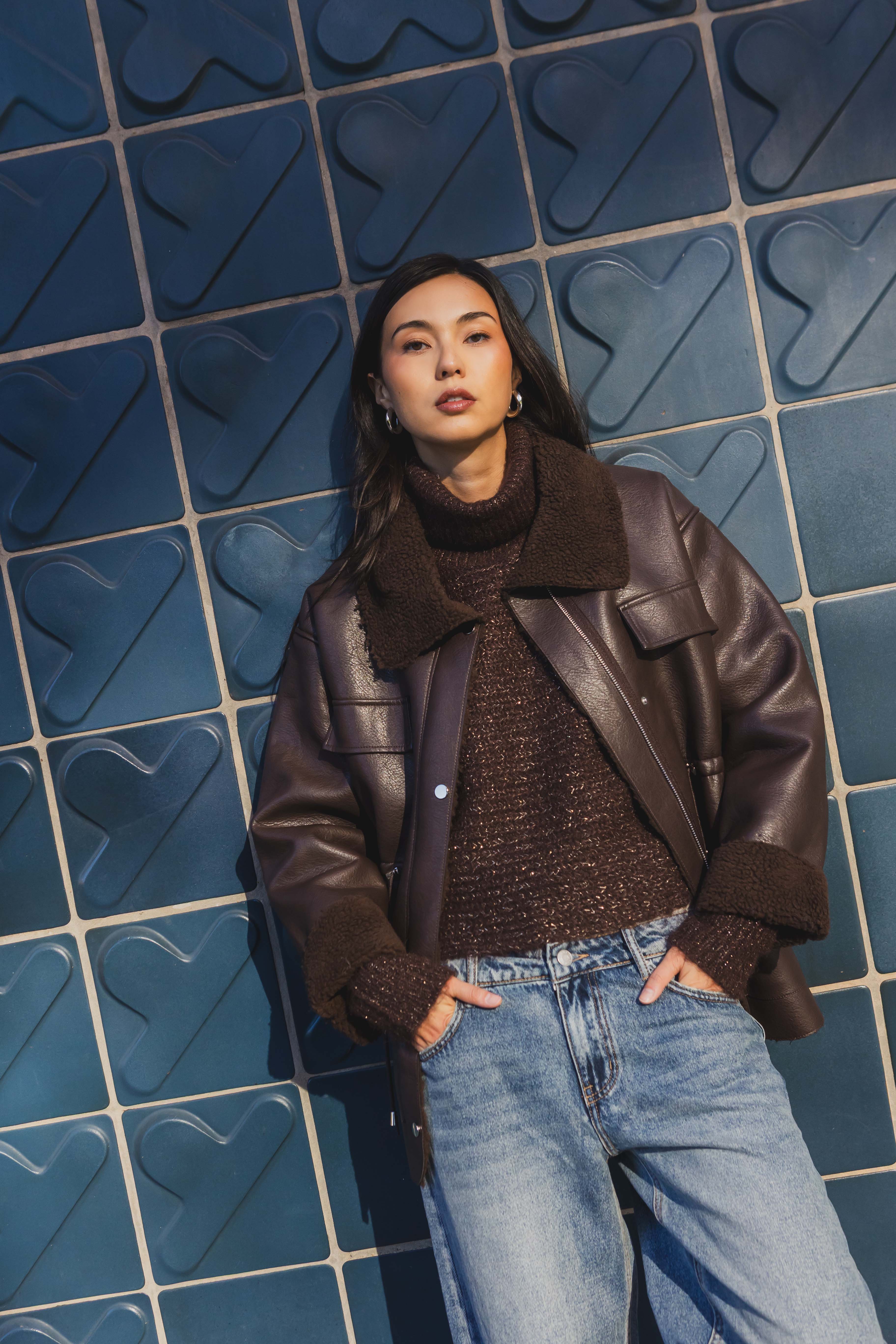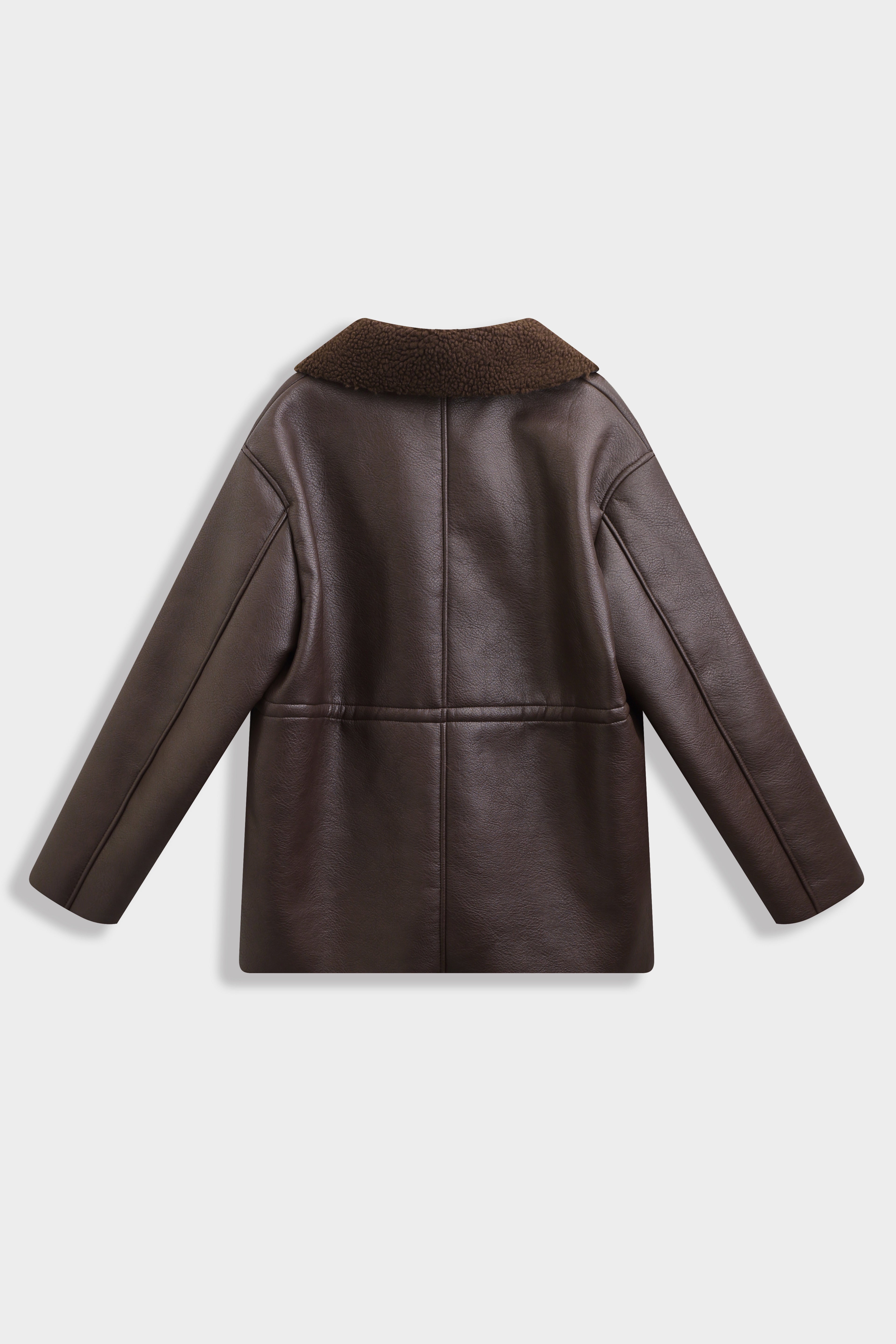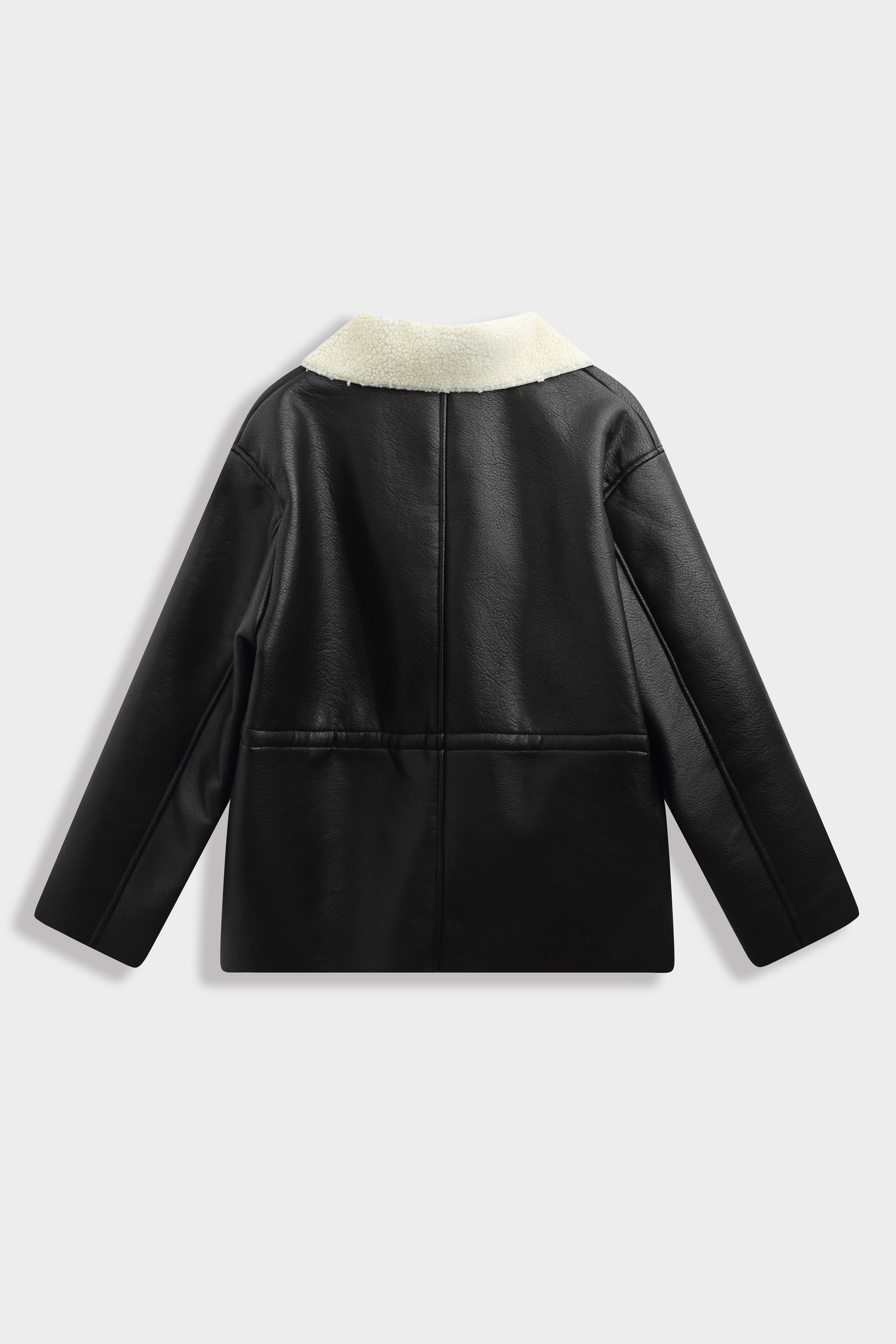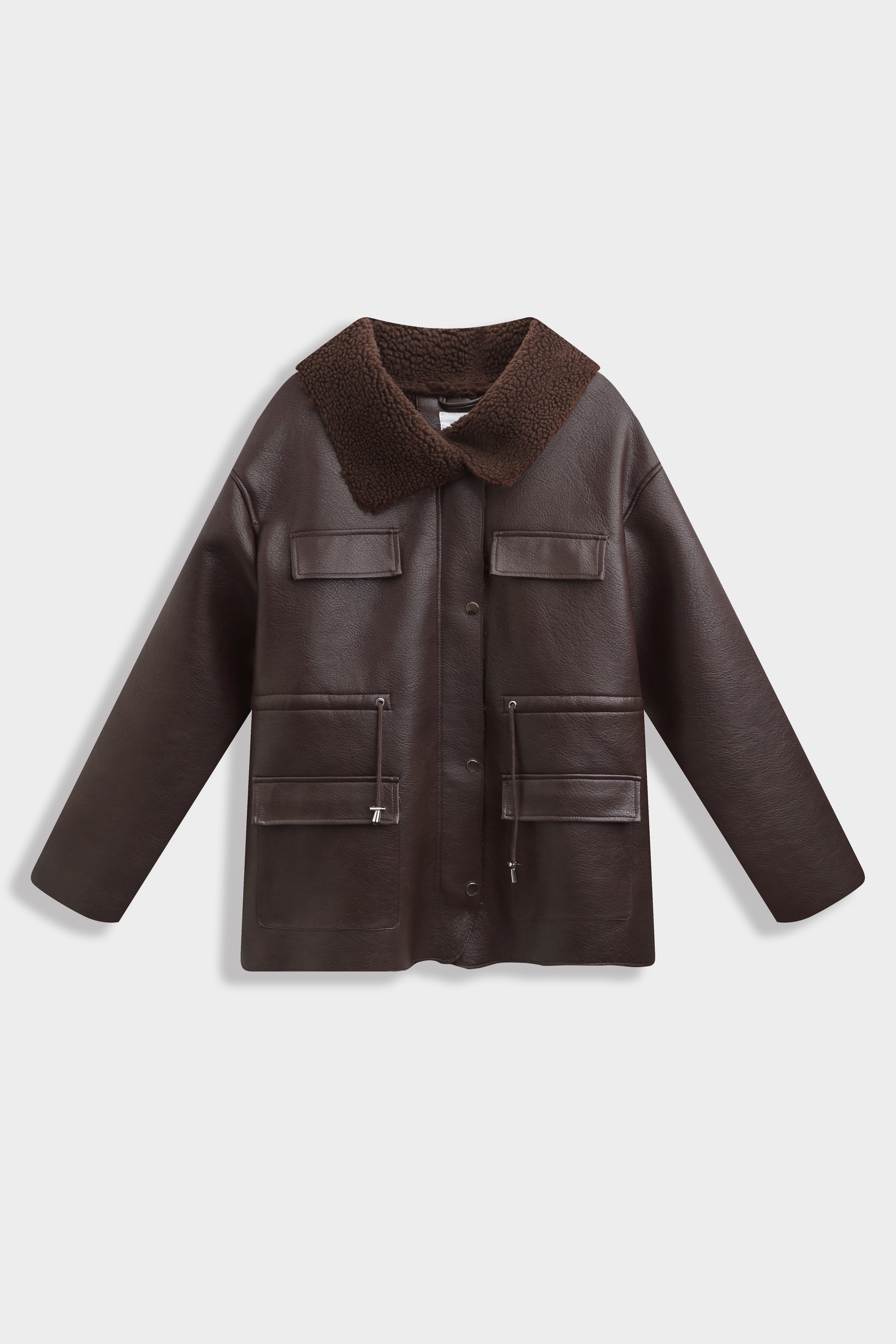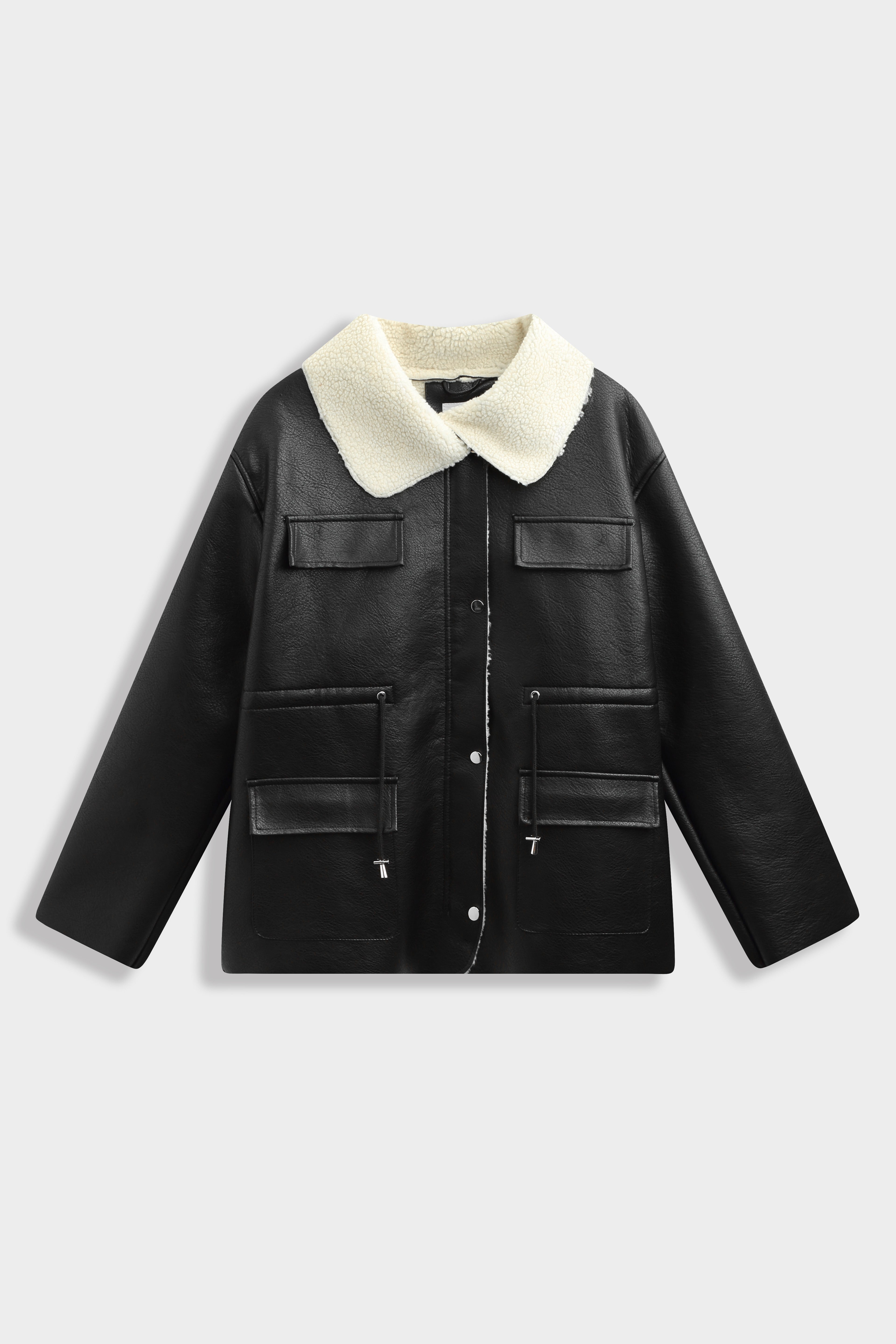 • Col chemise en sherpa contrastant, fermeture par zip métal et boutons-pression.